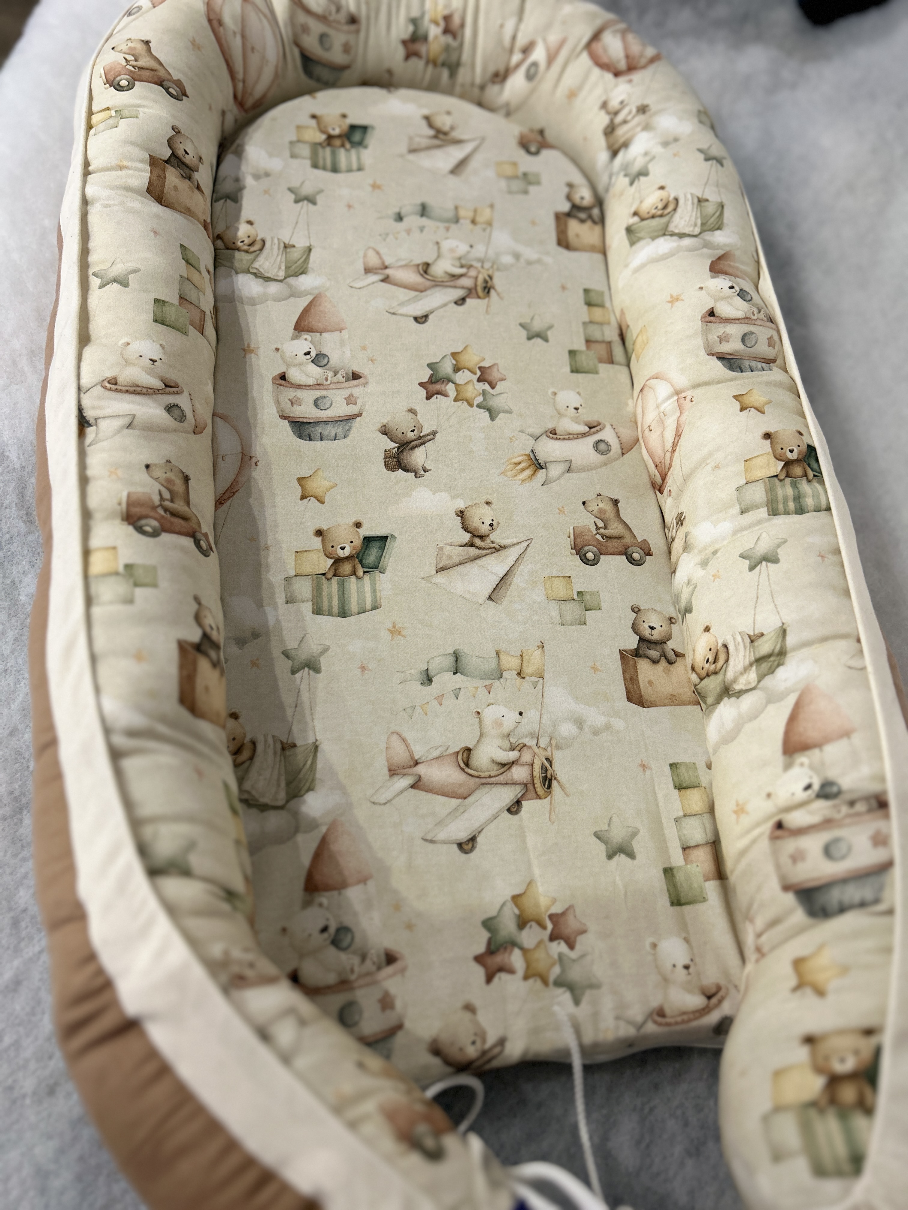 A peremek töltete antiallergén anyag, amely megfelelő tartást biztosít, miközben megőrzi a fészek puha, ölelő jellegét.