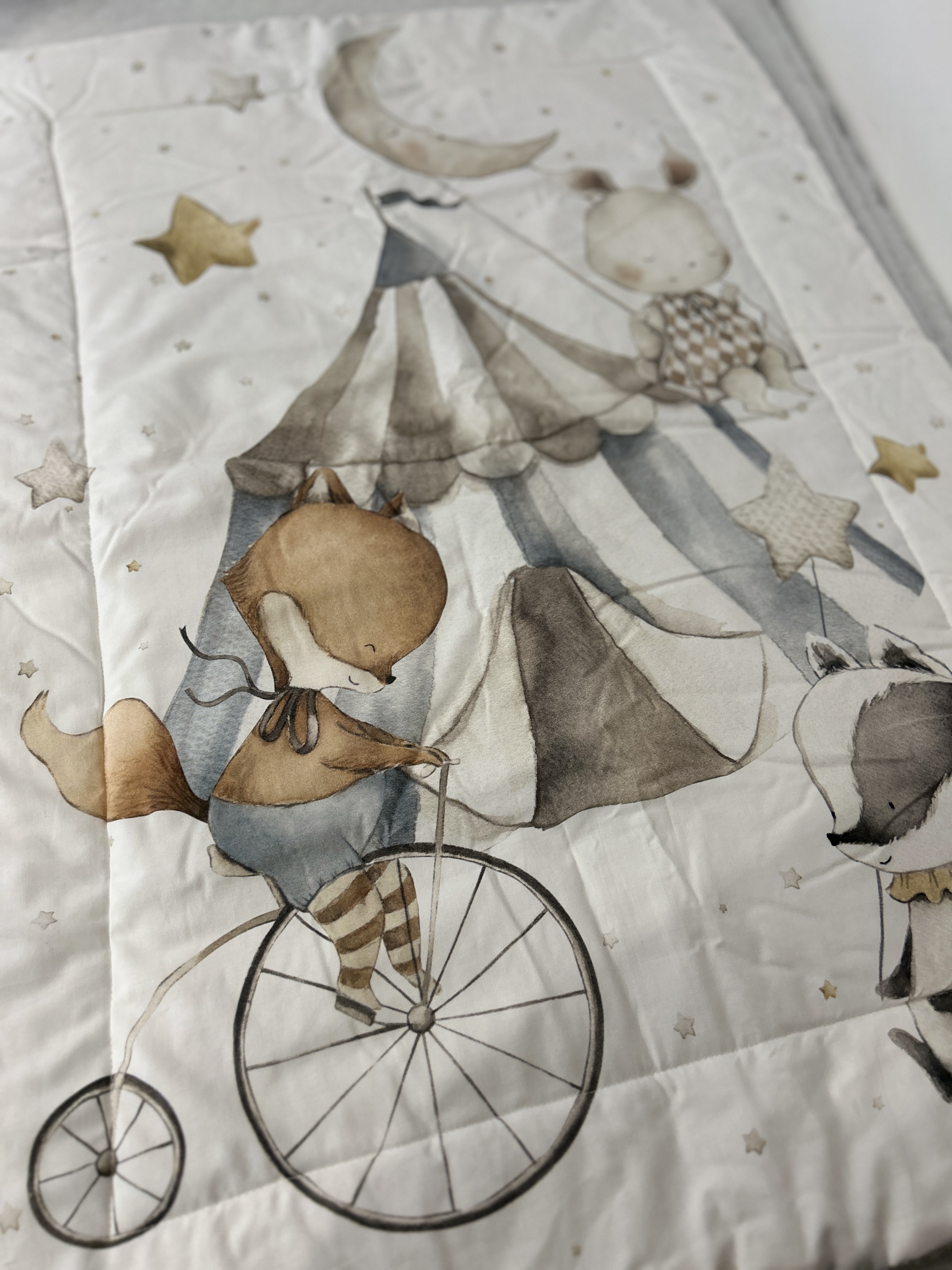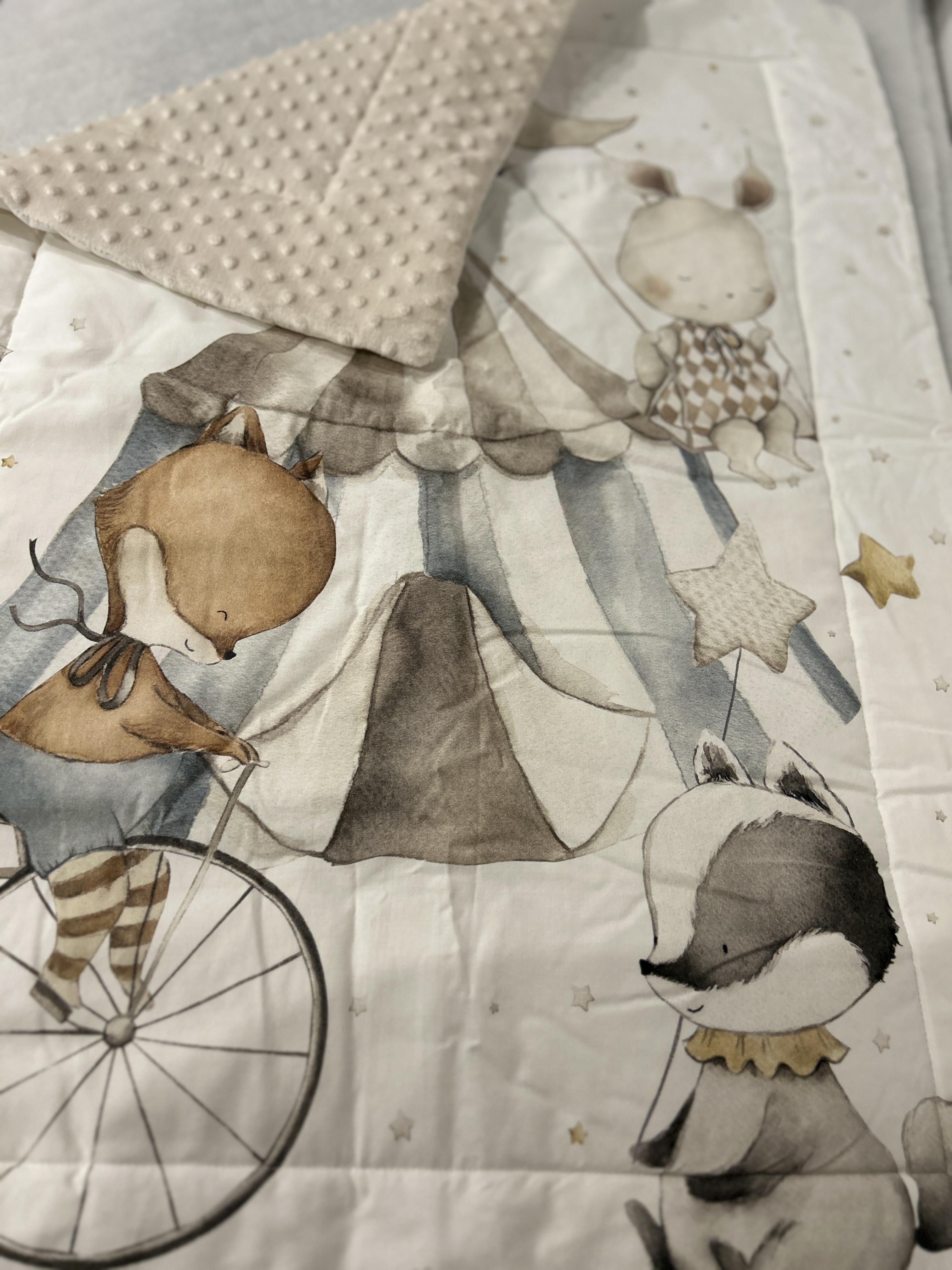 Ez a babatakaró prémium minőségű pamutvászon panelből készült, amely puha tapintású, légáteresztő és kíméletes a baba érzékeny bőréhez. A gondosan válogatott anyag biztosítja a kényelmet mindennapi használat során, legyen szó alvásról, sétáról vagy utazásról.